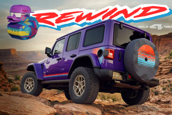 Le Wrangler Rewind adopte une identité graphique inspirée des néons et de la culture pop des eighties.